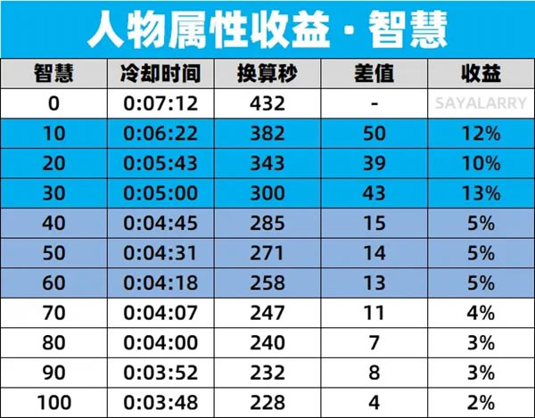 ·可以看出人物的基础智慧越高,智慧洗礼的收益越少。从下图可以看出,基础智慧从6阶→10阶的收益也是非常之少