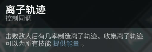 离子轨迹,击败敌人除去自身击败的以外,队友击败的也算(好像制造概率没有自身的高)效果是为所有技能提供技能能量,很可观,也就是前文讲纪律和力量不需要过多去堆的原因