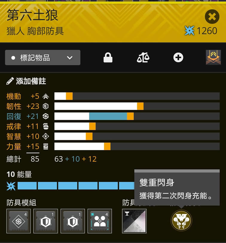 3.胸甲:两个消震器/近战抗性/火焰抗性