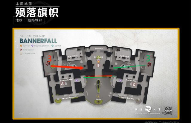 进入正题之前我们先了解一下地图,秋天旗帜是一张中远距离的图,这意味着手炮AR狙击斥候脉冲都能使用,那我先带大家识图吧!