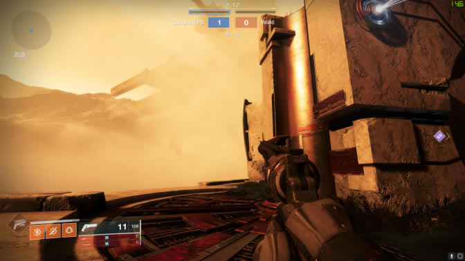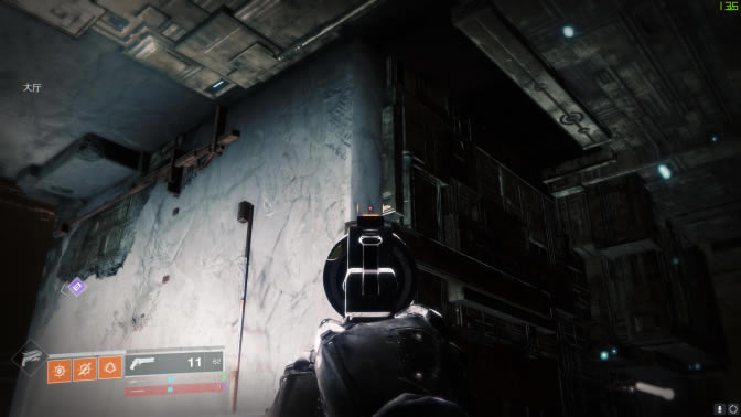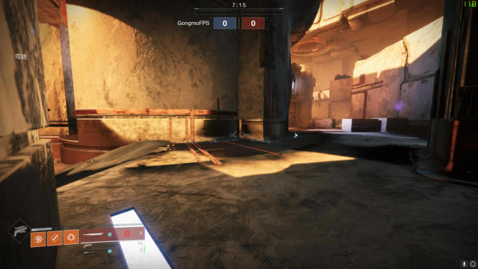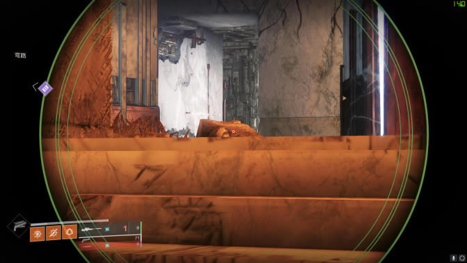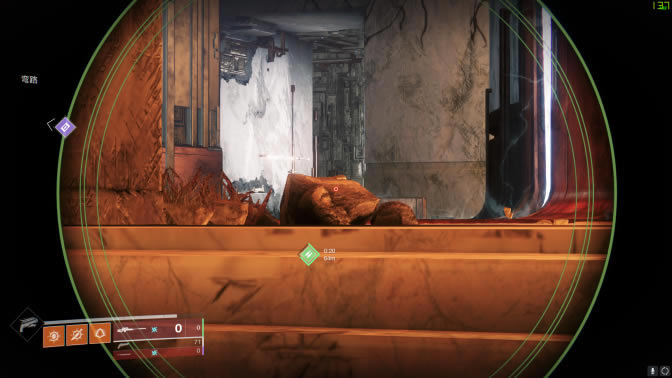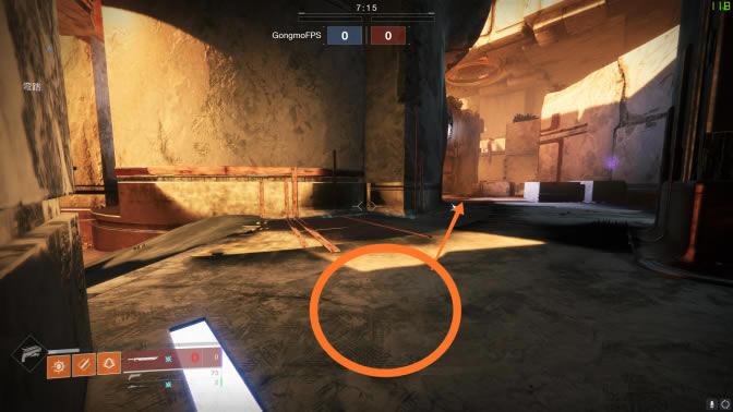 这是双方复活点出来后中间圆盘的两个拐角,不要小看这两个小角落,蹲在这里面,你可以通过雷达来了解敌方的走向,但问题来了,怎么知道对方要干嘛,我总结出几点,如果出现职业跳跃的声音比如猎人的跳跃声效,泰坦的喷气,术士的飞翔,那可以判断对面已经进入圆盘要突袭了,这时候可以选择蹲一波反手。如果没有出现声音,但是外场又有弹痕出现,这时候可以直接贴着墙往内场走,进行一波绕后,用脉冲偷他们屁股,你可以选择往远一点走,避免出现在他们的雷达里。这个点位同时可以架到内场狗洞,可以帮助队友架住点位。