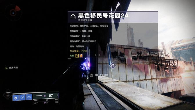 第一行,传说难度下的额外护盾、元素匹配、锁定装备?。额外护盾?,在这个本里面最直白的体现就是给守门精英提供一个额外的元素护盾,再加上元素护盾?,需要对应元素武器进行护盾击破。打过一遍普通的小伙伴都知道,本关卡中的所有怪物种类均为堕落者,且守门精英、关底的boss护卫及boss为魔眼?,所以判定护盾种类为虚空护盾,虚空武器为必要携带武器,除此之外,本关卡其余堕落者均无元素护盾。
