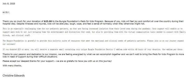 后面两图是bungie感谢信,和通知你48小时内会收到心心念念的名片,最后说一下PayPal真的很简单注册和支付会方便大家参与以后的活动