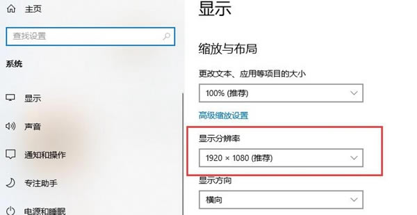 3.桌面显示分辨率一定要与游戏中的分辨率设置一致,可以在win10分辨率设置界面中进行确认。