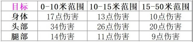 以下是审判在不同距离下的伤害数值: