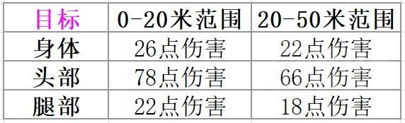 下图表格显示了幽灵在无畏契约中所能造成的伤害准确数值: