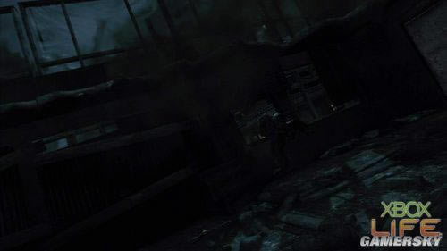 两人穿过建筑物再次来到户外,在巷底的屋子阳台上终于见到刚刚失散的队友了,四人合力对付市场中出现的所有敌人。