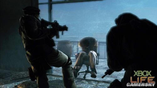 此处看起来就是资讯上塔里克所藏身的地方了,四人迅速的上楼来到一处房门半开的房间外,「野兔」一脚踹开大门后,出现在四人眼前的是一个手被反绑坐在椅子上的尸体,他是塔里克吗? 「老妈」一边怀疑一边小心的靠近尸体,「老妈」在查看尸体后突然大喊了一声「趴下!」,紧接着一脚用力的将尸体踹出门外。