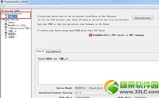 1、将iOS7设备连接电脑,打开TinyUmbrella小雨伞(需要Java环境运行)。
