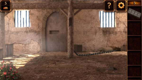 按从左至右的顺序组合死狮身上的图案,铁门打开,通关!