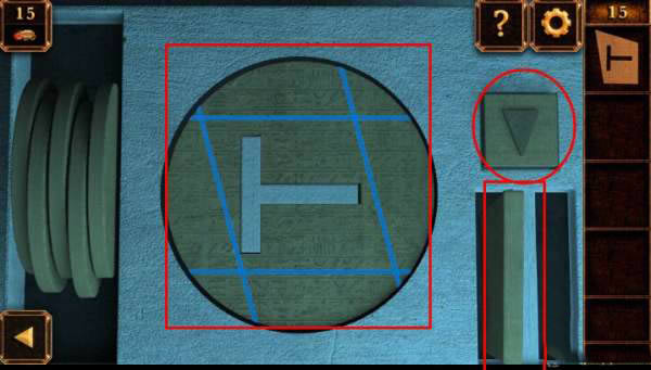 返回至有天枰处,请看小编用红色圆圈画出的标记,没错,天枰一边放七颗硬币,一边放二颗硬币,至于为什么聪明的玩家看看上一步小编强调的重点就明白了。点击金字塔形物体将其获取!