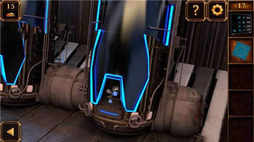 点击正面下方的场景,使用带球的梯形开门装置。可以看到有几根电线,点击拿起。