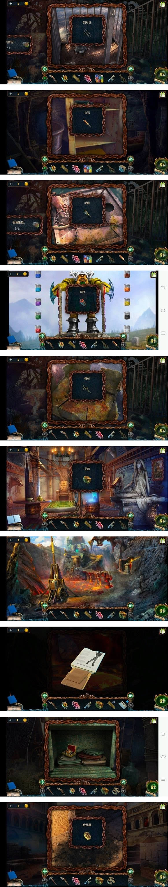 1、去火山,安好眼睛,得到组合部件和钥匙,玩龙首游戏,进入场景后玩中间的游戏,得到锅。