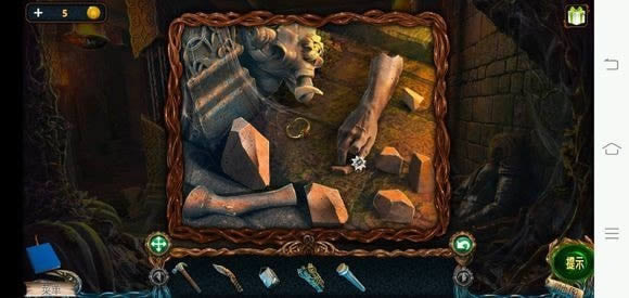 6、去地下城雕像处,放上戒指得到宝石,中间圆轴点击得到宝石,回疯狂城堡黄金屋,用宝石打开箱子得到头骨