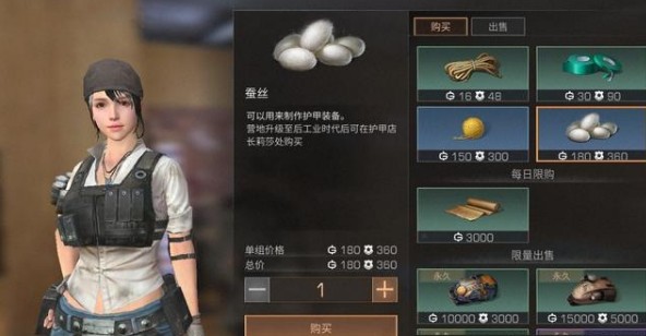 营地达到后工业时代后护甲店里,新增了蚕丝的出售。可以用来制作护甲装备,为奋战一线的幸存者,提供优质实惠的材料。