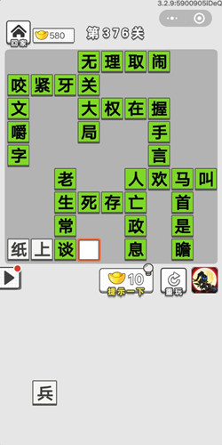 [摘要]《成语招贤记》第376的通关答案相对来说还是比较难得,那么具体的成语是什么呢?下面,就跟随本站的小编一起继续往下看,千万不要错过哦~>>>>>>点击前往查看《成语...