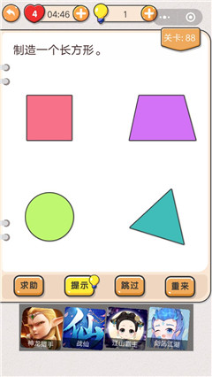 我不是猪头第88关要求我们制造一个长方形,但是图中给出的4个图形无论怎么拼接都无法得到长方形,那么我们要怎么通关呢?下面就是我不是猪头第88关攻略了,快来看看吧!