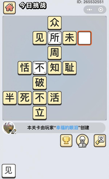 [摘要]成语小秀才1月28日每日挑战答案是什么?下面小编就带来了成语小秀才1月28日每日挑战答案一览,感兴趣的玩家们就一起来看看吧!>>>>《成语小秀才》每日挑战攻略大全成语小秀才1...