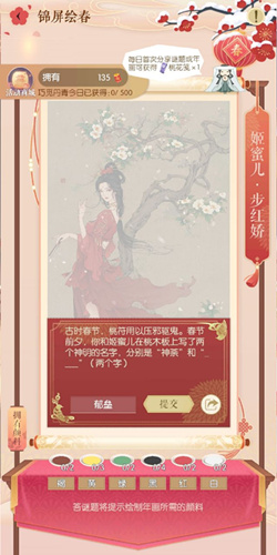 >>>>点击查看遇见逆水寒锦屏绘春答案大全