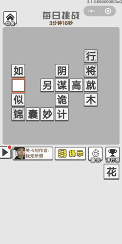 [摘要]《成语招贤记》11月26号中的难度并不是很大,主要是找到“计”和“谋”的位置。那么接下来,就跟随玩游戏网的小编一起来看一下相关的答案介绍吧!>>>>点击查看19年11月每日挑...