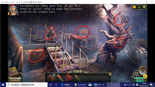 29、 机械装置,安部件 ,打开门,玩糖果消消乐(让钥匙落在宝箱在旁边打开三个宝箱,有两个按钮可以转动游戏画面的方向)得注射器、镊子。