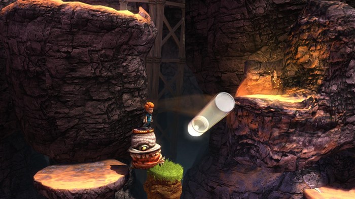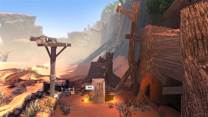 在上了上图的斜坡台阶之后要注意,需要爬上那根垂下的绳子,然后向右,一直沿着那根横着的绳子往右走,不要想着跳过去,小编试过了,跳的结局就是摔死……在这段被怪兽追击的过程中一定要快,不快的话就会被怪兽抓住给吃了。一旦上了那根横着的绳子生命就得到保障了。怪兽会摧毁那个木架子一样的东西,绳子一端断了之后垂在悬崖上就可以直接爬上去了。怪兽的危机就暂时过去了。